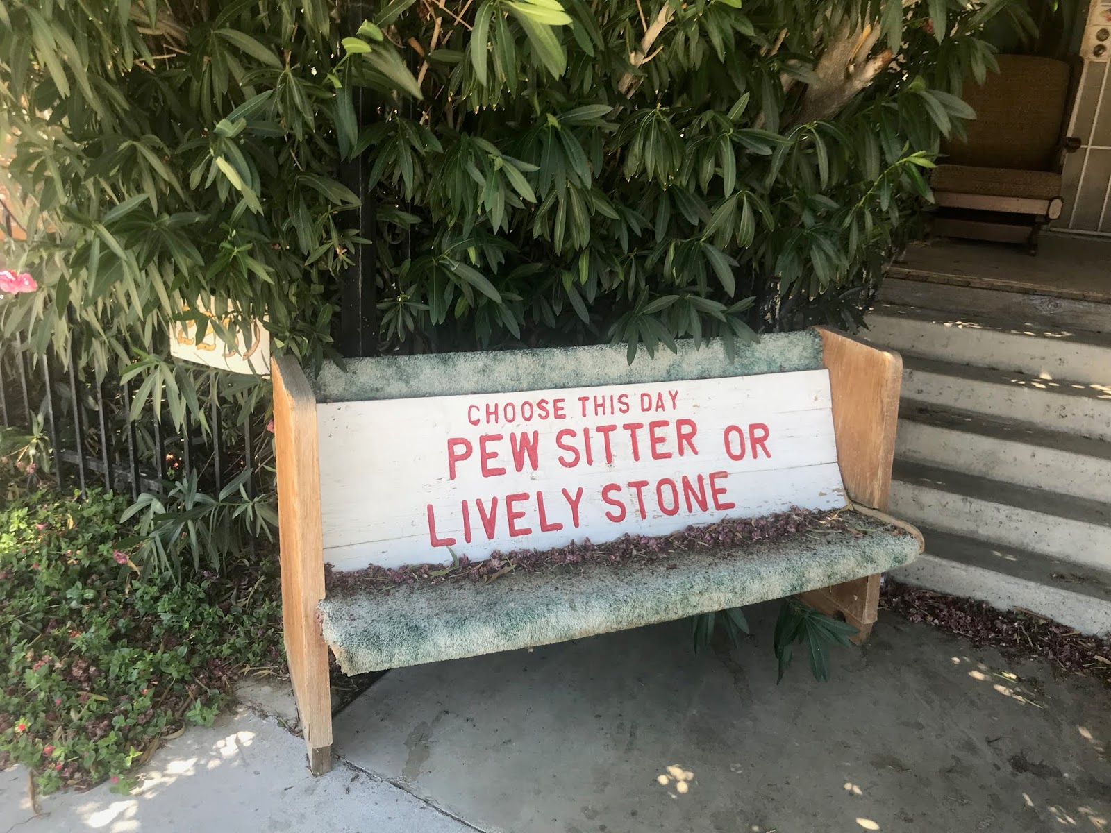 Here, wedged between the highway and the airplane graveyard euphemistically called the Mojave Air & Space Port, you will find the most interesting home decorations. Namely wood carved billboards of all shapes and sizes, quoting scripture. Or someone's interpretation of scripture.
